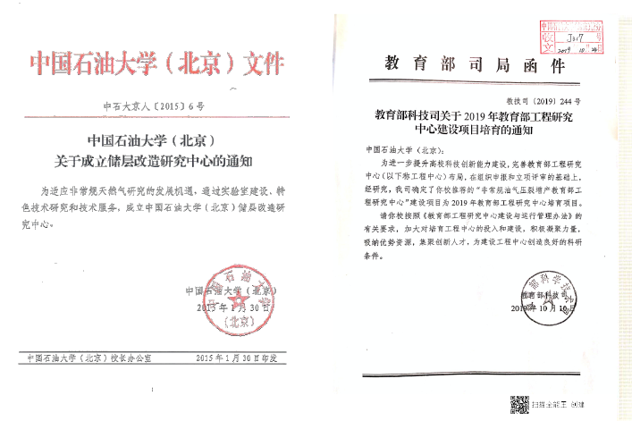 2015年1月中国石油大学(北京)成立了“储层改造研究中心”,2016年并入油气资源与探测国家重点实验室,2019年“非常规油气压裂增产教育部工程研究中心”,并建立了国际开放非常规油气增产实验室,获得国际CNAS和国内CMA认证。