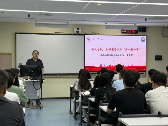 2025年6月12日,毕业生离校前夕,学院党委书记王兵老师以“清风启航:扣好廉洁从业‘第一粒扣子’”为主题,为全体毕业生党员讲授了在校期间最后一堂党课。