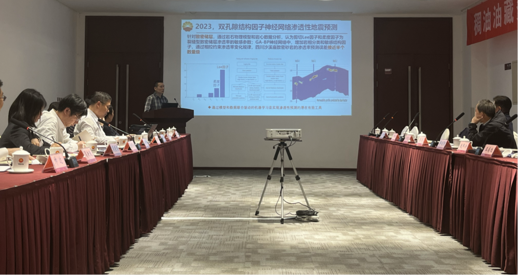 中石油勘探开发研究院测井所俞军副主任针对岩心渗透率实验室测量与测井评价方法进行了系统性的梳理,分析了渗透率实验测量和井曲线建模的影响因素及精度。中国石油大学(华东)葛新民教授从岩石渗透率的影响因素分析出发,针对基于常规测井、核磁共振测井、机器学习的渗透率评价方法,介绍了新技术和应用案例。中石油勘探开发研究院地球物理所专家戴晓峰介绍了储层渗透性地震预测的研究历程,阐述了基于孔隙结构的渗透性相控地震预测方法,展示了其在致密储层甜点预测方面的应用效果;帅达博士分析了不同尺度上渗透率测量的方法和模型,着重介绍了储层渗透性地震预测技术序列,包括基于深度学习、岩石物理建模和两者融合的方法,并展示了对应的应用案例。中石油勘探开发研究院西北分院专家桂金咏介绍了基于岩石物理、数据驱动的渗透性预测技术及其应用进展。中国石油大学(北京)袁三一教授介绍了基于贝叶斯的深度学习方法在储层物性参数预测方面的应用效果;唐跟阳教授介绍了岩心渗透率和地震频散衰减关联性的内在机理和实验证据,为从地震响应中提取渗透率相关属性提供了物理基础;廖勤拙教授介绍了基于代理模型的自动历史拟合与渗透率反演方法,并介绍了其在油气田开发方面的应用。