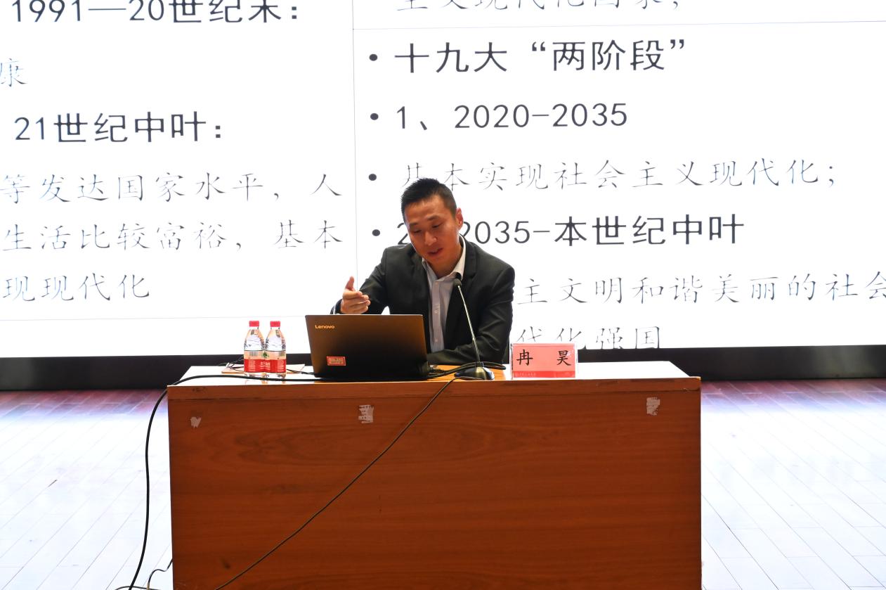 冉昊以“全面建设社会主义现代化国家的行动纲领——学习党的二十大精神”为题开展专题讲座,从大会的主题引入,强调了“全面贯彻、全面建设、全面推进”的重要含义,阐述了中国式现代化的基本逻辑和结构。从历史定位出发,介绍了马克思主义中国化的三次飞跃;讲述了国家完成脱贫攻坚、全面建设小康社会的历史任务;分析了中国化时代化的马克思主义行的原因。从使命任务切入,指出了中国共产党的中心任务和战略安排,分析了中国式现代化的五大特征、本质要求和原则。从战略部署聚焦,指出了对一些问题的误区,指明了正确的理解方式;强调了国家安全、社会稳定等重要内容,重点强调了教育、科技和人才的基础性和战略性支撑的作用。以实现保障结尾,点明了推进中国式现代化关键在党的重要论述;赞扬了中国共产党坚持自我革命、推进全面从严治党的伟大实践;再次强调了新时代新征程全党必须牢记五个“必由之路”。