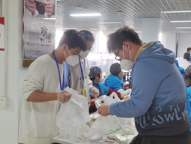陈涛默默付出,带动了身边的学生加入到志愿者的队伍中,地物五班学生积极响应,主动帮助打包食堂饭菜。师生同在一起汇聚成了更大的力量,不一会儿早饭就被打包完成送到各个宿舍学生手里。学生们纷纷表示,跟老师一起工作,大家的工作效率都提高了,也深刻体会到工作人员和志愿者的艰辛,更加理解了学校的疫情防控政策,后续将全力支持学校各部门的工作,为战胜疫情出一份力。