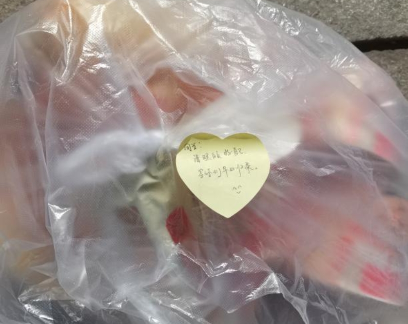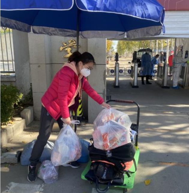 封闭管理第一天,徐静担心滞留在校人员没有足够的生活物资,她购买了口罩、牙刷、牙膏、消毒用品等物资亲自送到学校门口,此时,她5岁的儿子还独自在家等候。