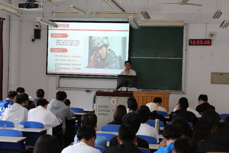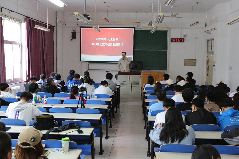 国无防不立,民无军不安,为激发同学们应征入伍的热情,帮助有志应征入伍的同学了解大学生征兵入伍优待政策,5月5日,地球物理学院召开2023年征兵宣传讲座。学院党委副书记、辅导员和100余名学生参加活动。