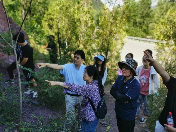 参观结束后,师生们乘车赴南雁路田庄村附近开展野外油气地质教学实践活动,几位老师带学生们观察剖面,深入讲解相关的构造、沉积知识,分析探讨露头的岩性、岩相和断层等。虽然天气十分炎热,但同学们依然学习热情高涨,积极讨论并和老师交流学习。