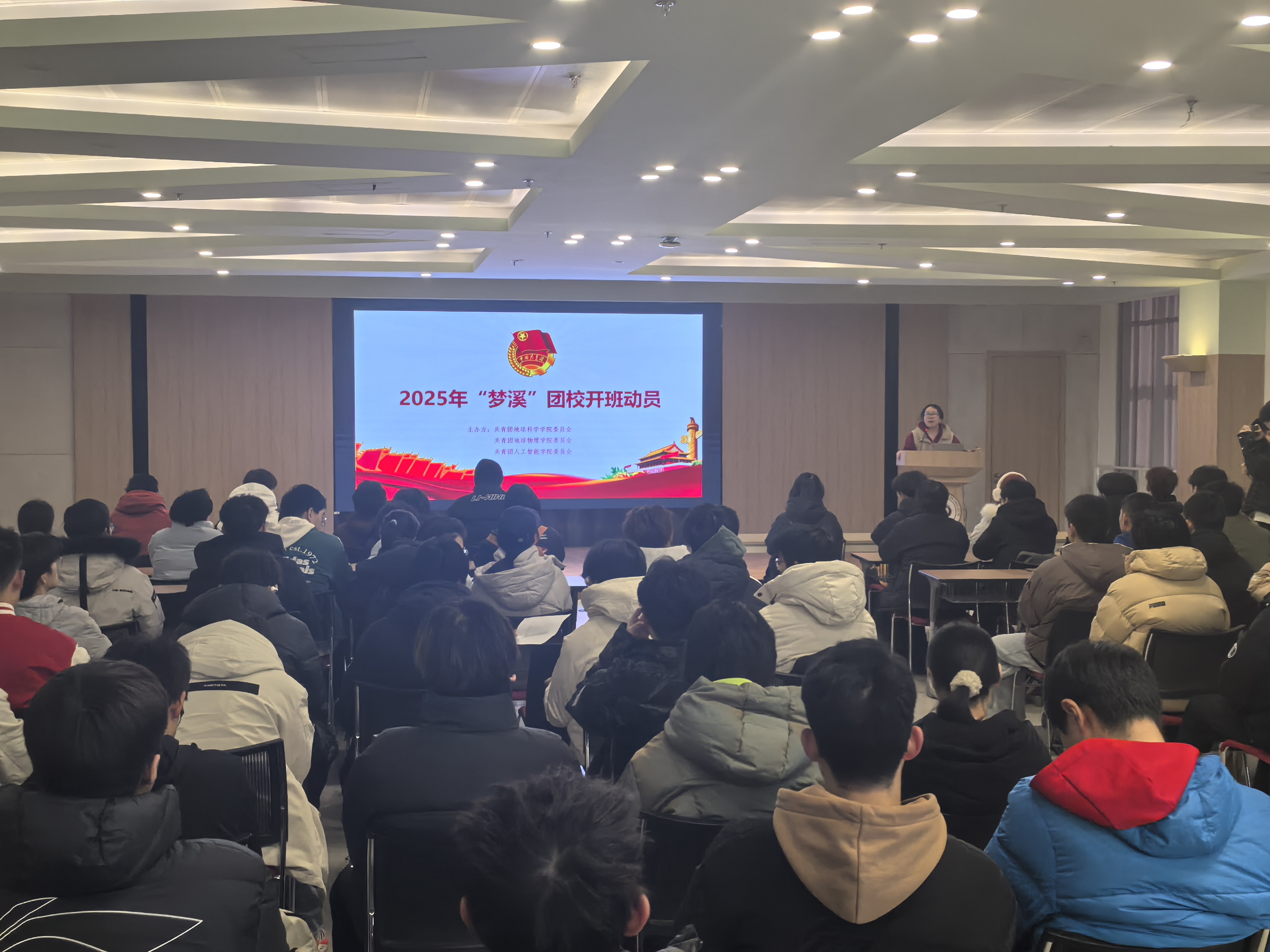 2025年12月31日,由地球科学学院团委、地球物理学院团委与人工智能学院团委联合主办的第二期“梦溪”团校开营仪式顺利举办。来自三个学院的103名入团积极分子齐聚一堂,带着对理想的追求与对成长的渴望,共同开启为期三个月的思想淬炼与能力提升之旅。