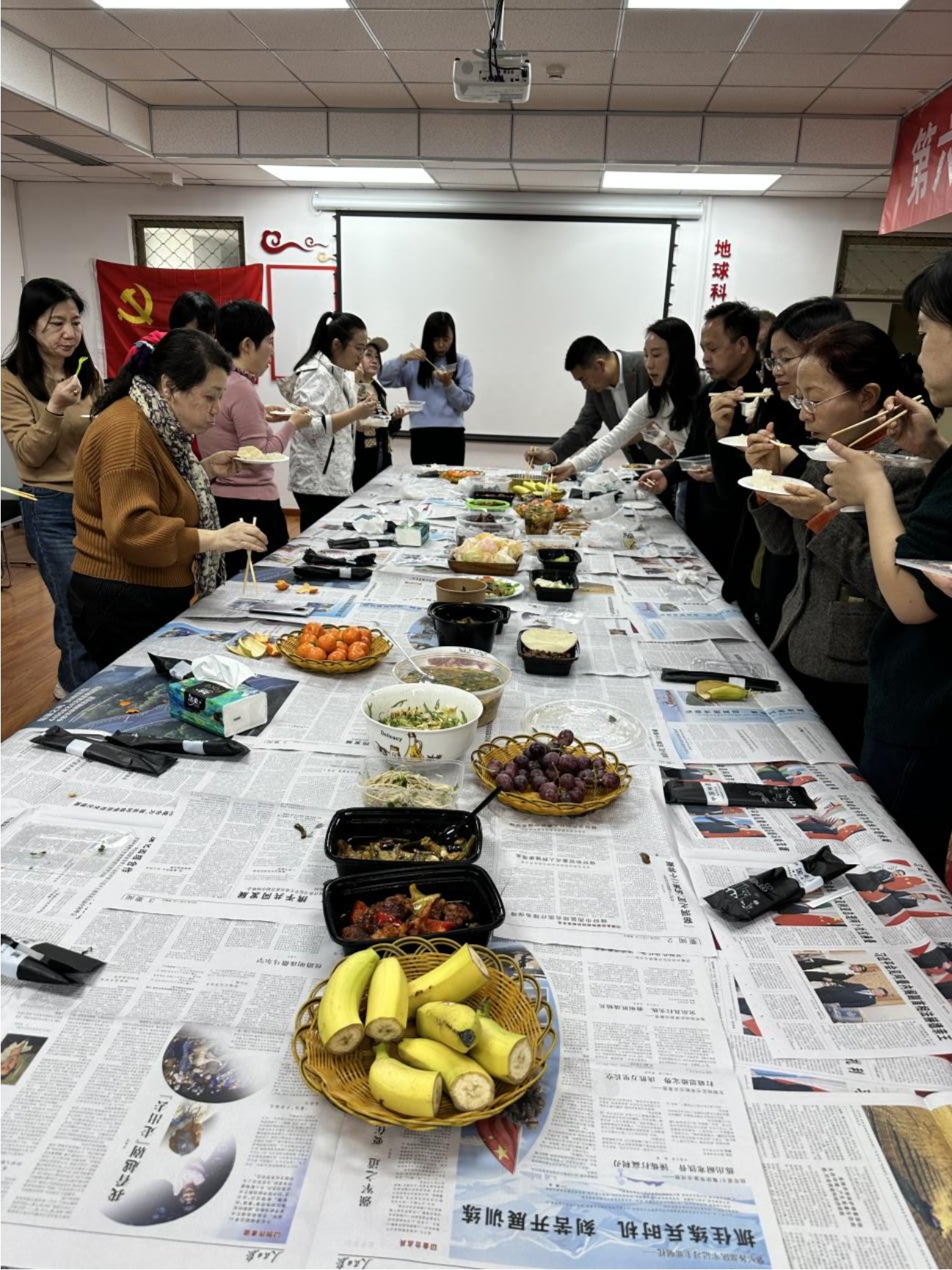 3月8日中午在学院党建活动室,教师们欢聚一堂,共同开展庆“三八”系列活动之一“美食品鉴会”。教师们携带从家中做好的各地美食,川菜、湘菜、东北菜等色香味俱全的各类菜系齐聚一堂。地球科学学院书记姜福杰、院长王贵文、副院长刘钰铭及副院长兼工会主席余一欣向各位女教师致以节日的问候和祝福,大家边品尝美食边交流,餐后各位老师一展歌喉,促进了老师们的相互了解,增进了彼此间的与友谊。
