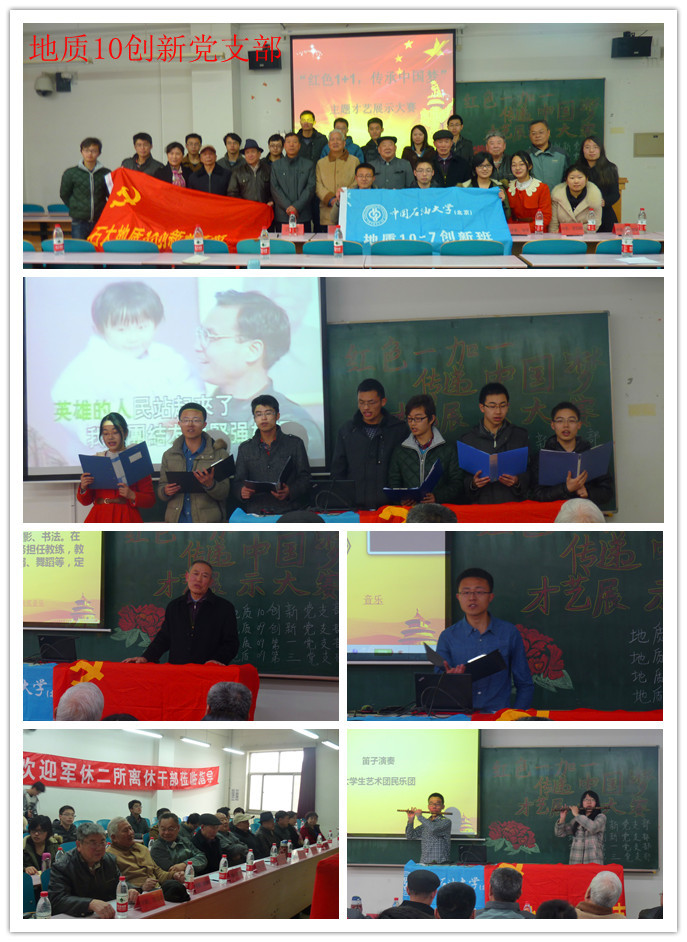 3月29日下午,应地质10创新党支部、地质10-7团支部的邀请,昌平军休二所党支部部分老党员、老干部,到我校参加“红色1+1”共建联欢会。地质09部分支部党员也应邀参加活动。