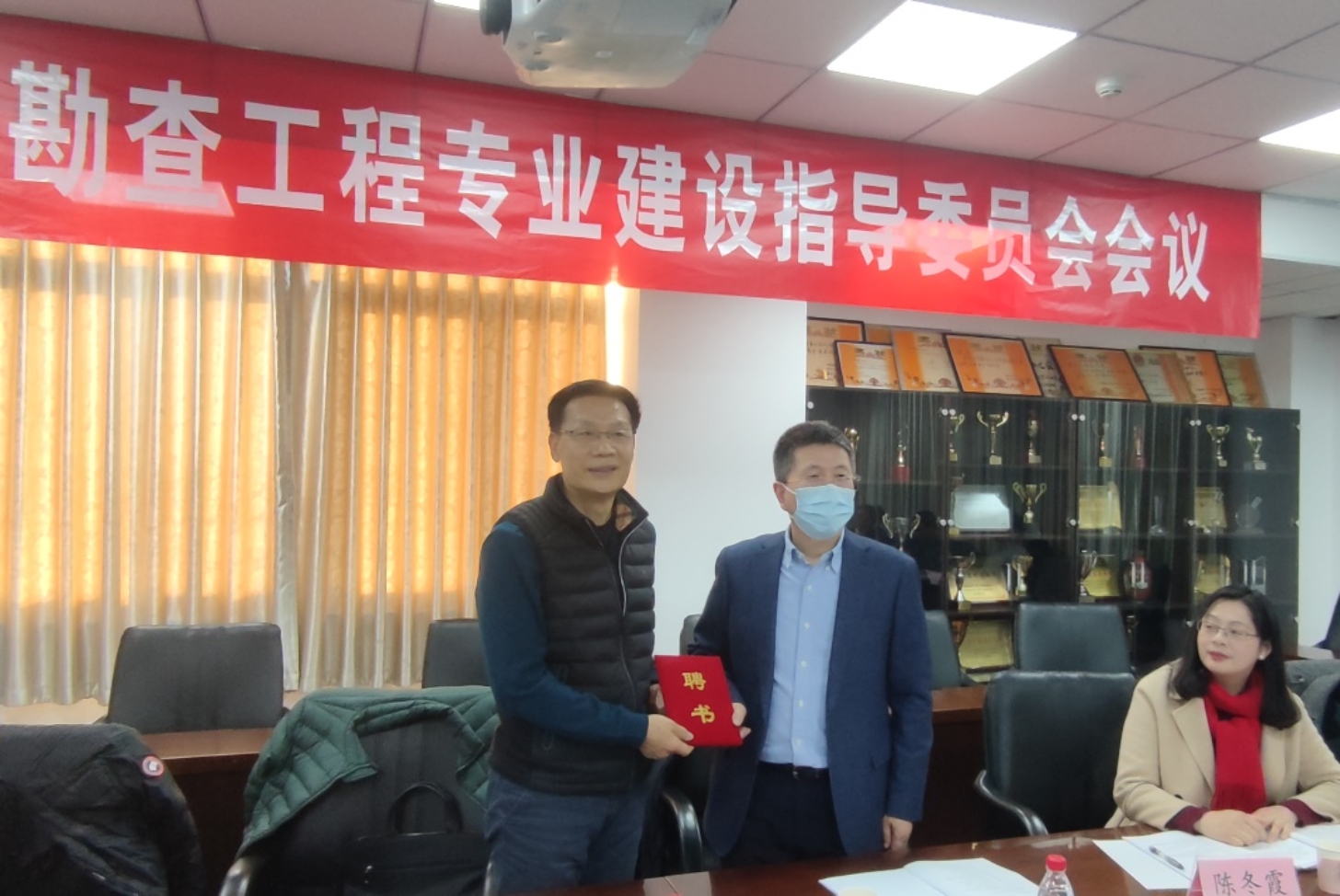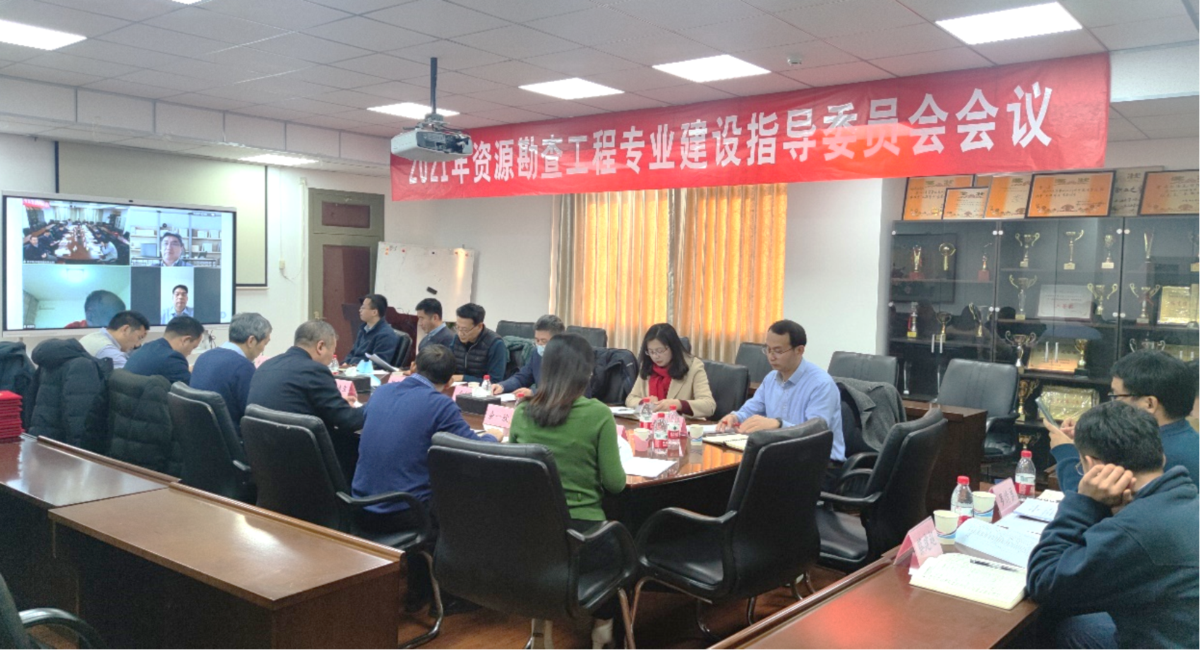 2021年12月19日,地球科学学院在地质楼1105会议室召开新一届资源勘查工程专业建设指导委员会线上+线下会议。