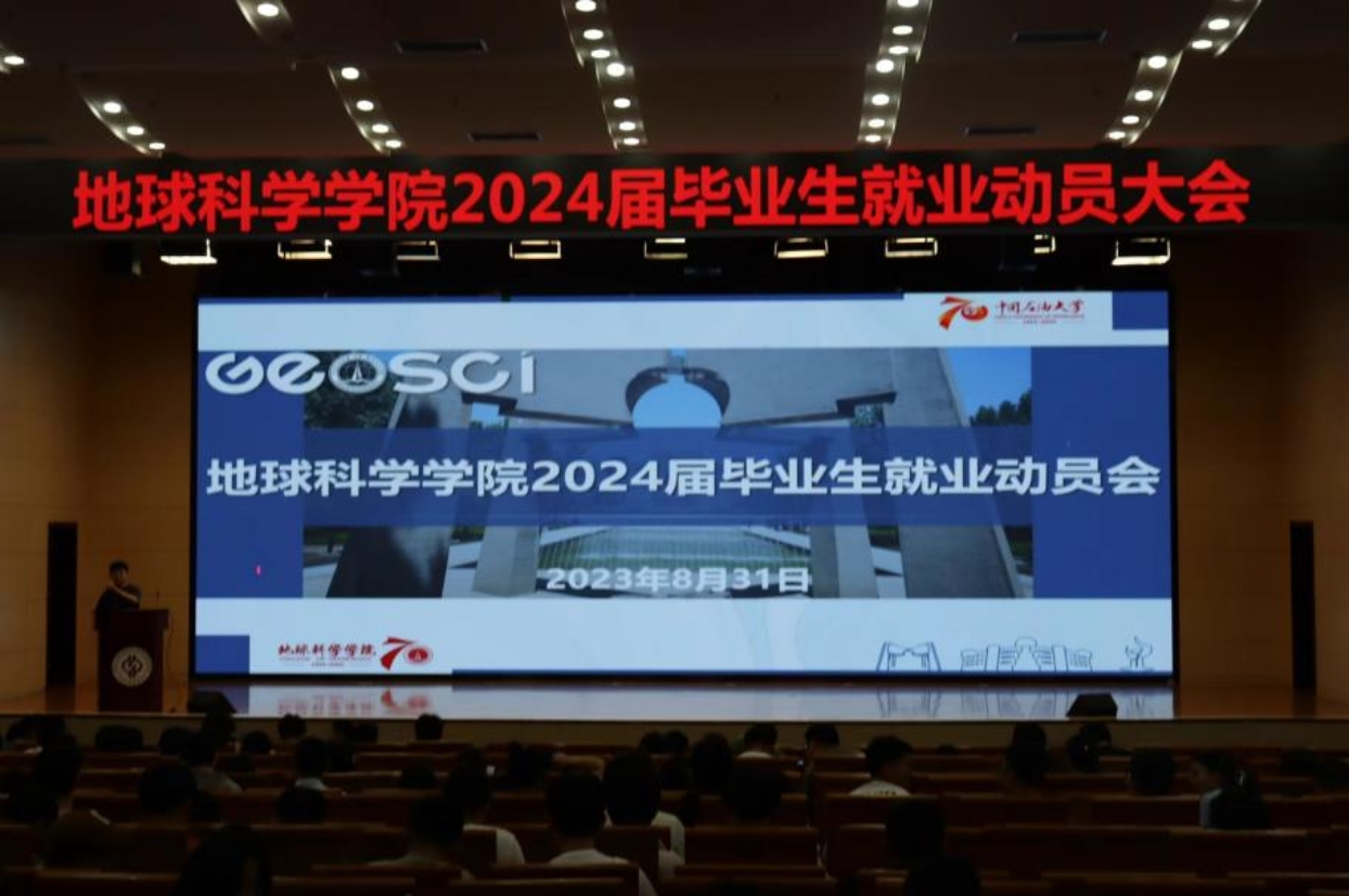 8月31日,地球科学学院在中油大厦报告厅召开了2024届毕业生就业动员大会,学校就业指导中心副主任范晓静、地球科学学院党委副书记王茹、辅导员杨冀宁、鲜国彦,以及学院2024届全体毕业生参会。
