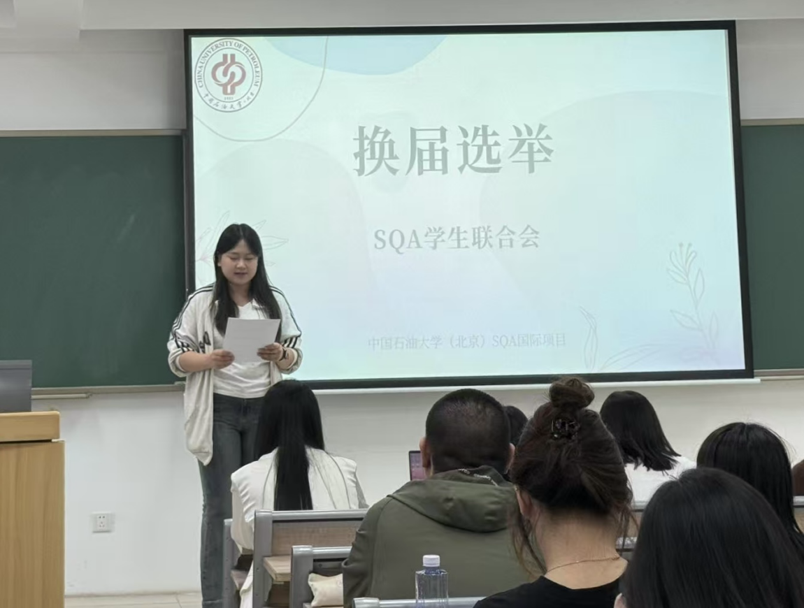 为更好促进学生联合会各项工作的有效开展,充分调动学生自主管理的积极性,中国石油大学(北京)SQA项目学生联合会新一届换届大会于2025年4月16日晚在东教学楼601教室隆重举行。学工老师以及新老学生联合会成员共50余人齐聚一堂,共同见证这一重要时刻,为学生联合会的发展揭开了崭新篇章。
