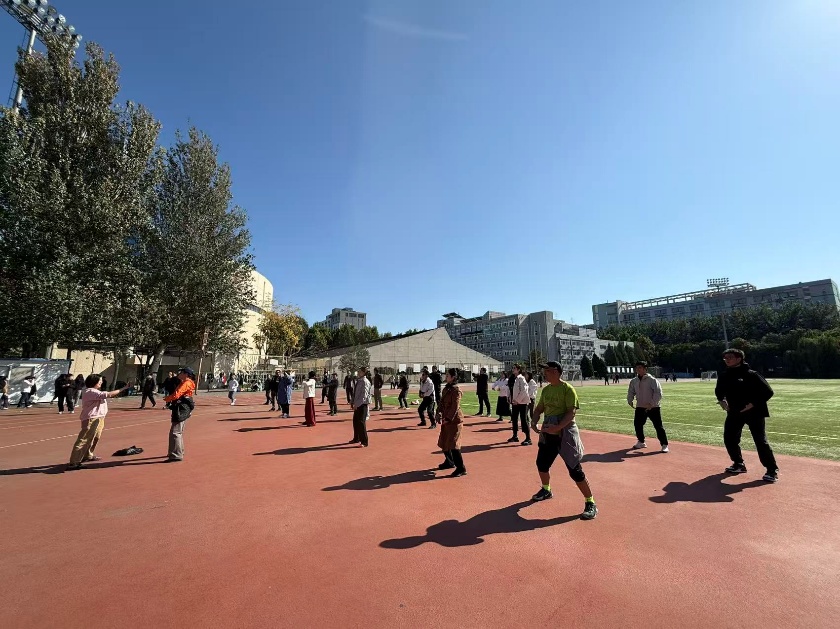 本次活动特邀学院专业教师领操。伴随着悠扬舒缓的音乐,朱老师首先清晰讲解了八段锦的动作要领及其健身养生功效。在她的悉心示范和指导下,教职工们纷纷跟随口令,舒展肢体,调整呼吸,认真习练一招一式。操场上,大家动作整齐划一,或柔缓舒展,或刚柔并济,沉浸在传统养生功法带来的宁静与和谐之中。练习间隙,教职工们互相交流动作心得,分享习练感受,现场氛围轻松融洽。