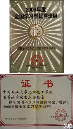 重质油国家重点实验室被评为2006年度全国学习型优秀班组