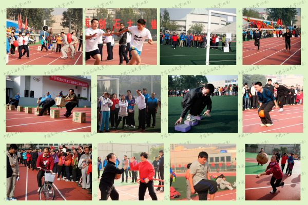 首先进行的是第九套广播操比赛,参赛教职工意气风发,动作整齐划一,精神昂扬振奋,充分展现了石大教职工奋发向上、朝气蓬勃的精神风貌。接下来的比赛更是精彩纷呈,“螃蟹赛跑”、“爱心速递”、“摸石过河”、“花式接力”、“彩虹飞舞”,选手们团结合作,观众们加油助威,比赛现场气氛十分热烈。最终,校机关、远程教育学院、化工学院、继续教育学院、后勤、石工学院、机械学院、校办产业总公司分列运动会团体总分前八名,远程教育学院、后勤、石工学院、地学院、理学院、机械学院、信息学院、继续教育学院分获广播体操比赛前八名。