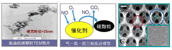 石油工业生产和由石油燃料加工与利用而产生的环境污染是较为严重的污染源之一。石油燃料加工与利用过程中产生的污染物的高效净化是保障国家环保战略,实现城市蓝天工程建设的重大需求。炭黑颗粒物(PM)是石油燃料在柴油发动机内燃烧后排放的尾气中最严重的污染物之一,它能导致呼吸系统疾病,是一种致癌物质(图1)。过滤器与氧化催化剂的结合是减少柴油车排放PM的最有效方法之一,高活性催化剂的开发是其中的关键技术。