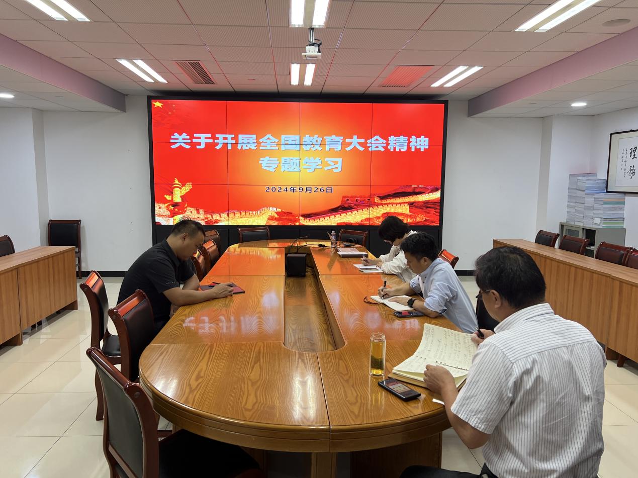 9月26日下午,后勤党总支组织召开中心组全国教育大会精神专题读书班,深刻领悟习近平总书记重要讲话精神实质和核心要义,落实好立德树人根本任务。会议由党总支书记王英国主持,全体党总支委员参会。
