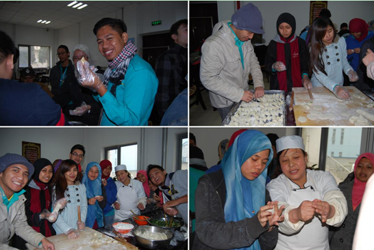 2013年4月19日下午,清真餐厅笑声不断,餐饮服务公司邀请部分留学生举行“体验中国传统文化感受舌尖上的美食”----留学生包饺子的活动。