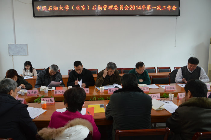 2014年1月10日上午,石大后勤管理委员会在后勤会议室召开了2014年第一次工作会,党委副书记雷玉江、副校长陈大恩以及后勤管理处、组织部、监察审计处、工会、团委、财务处、国有资产管理处、保卫处等相关部门的负责人参加了会议。