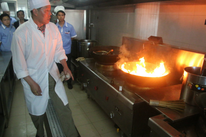 培训主讲人李德忠讲述了消防安全基本知识、防范措施、应急处理等方面内容,并现场显示了油锅着火的处理办法。他指出安全防火意识不够、火灾发生时应变能力不强是导致火灾发生时人员伤亡严重的两个重要原因。餐厅工作中电、气使用过程中最易发生火灾,要做到防患于未然,就必须做到电、气的安全使用,不使用时要注意切断电源、关闭燃气阀门,各餐厅、各厨房必须配备灭火毯、灭火器、防烟面具等消防用具。如出现危险时保持冷静,当事员工须选择适合的防范自救工具。