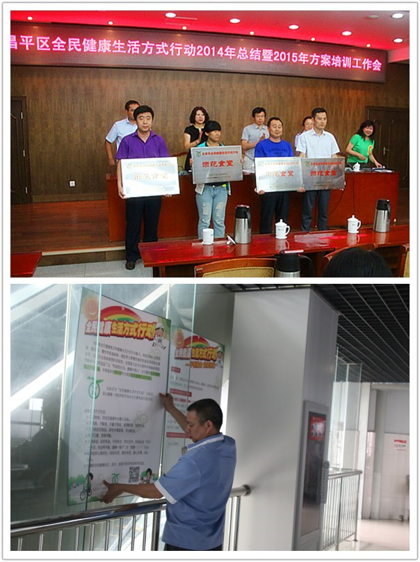 为不断提升我校师生的餐饮质量,打造健康、科学的饮食方式,餐饮服务公司于2014年3月成立健康食堂创建工作领导小组,按照北京市健康示范食堂创建标准,结合食堂的具体情况,精心制定了创建工作实施方案,明确了“夯实硬件,强化软件,着力细节,全面提升”的工作步骤和要求,明确完成各项工作的时间节点,经过一年多的不懈努力,第一食堂于2015年4月份顺利通过北京市卫生局和北京市全民健康生活方式行动办公室的联合验收。