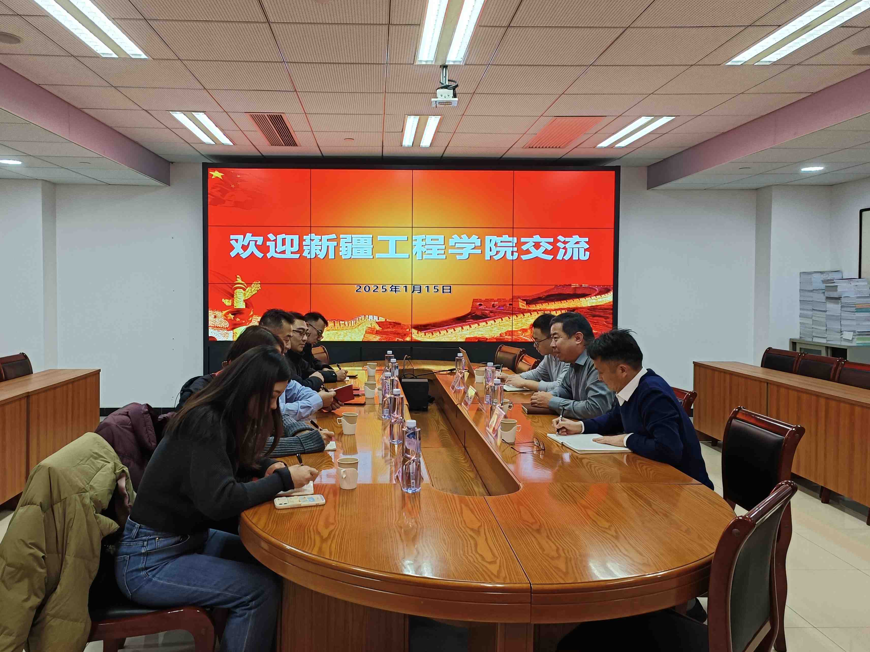 1月15日下午,新疆工程学院后勤综合服务中心党总支书记、主任靳登明同志等一行5人来我校调研交流。中国石油大学(北京)后勤管理处处长王英国、副处长刘凌参加交流会。