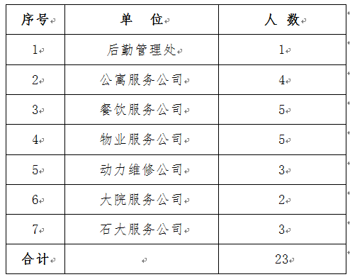全体后勤在编在岗和与石大服务公司正式签订劳动或劳务合同的非在编员工。