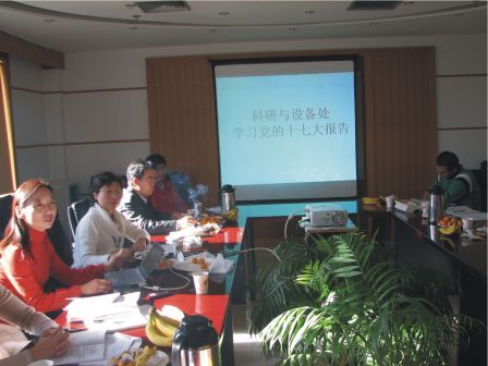 11月17日上午,科研与设备处党支部召开专题组织生活会,深入学习十七大报告和《中国共产党章程》。
