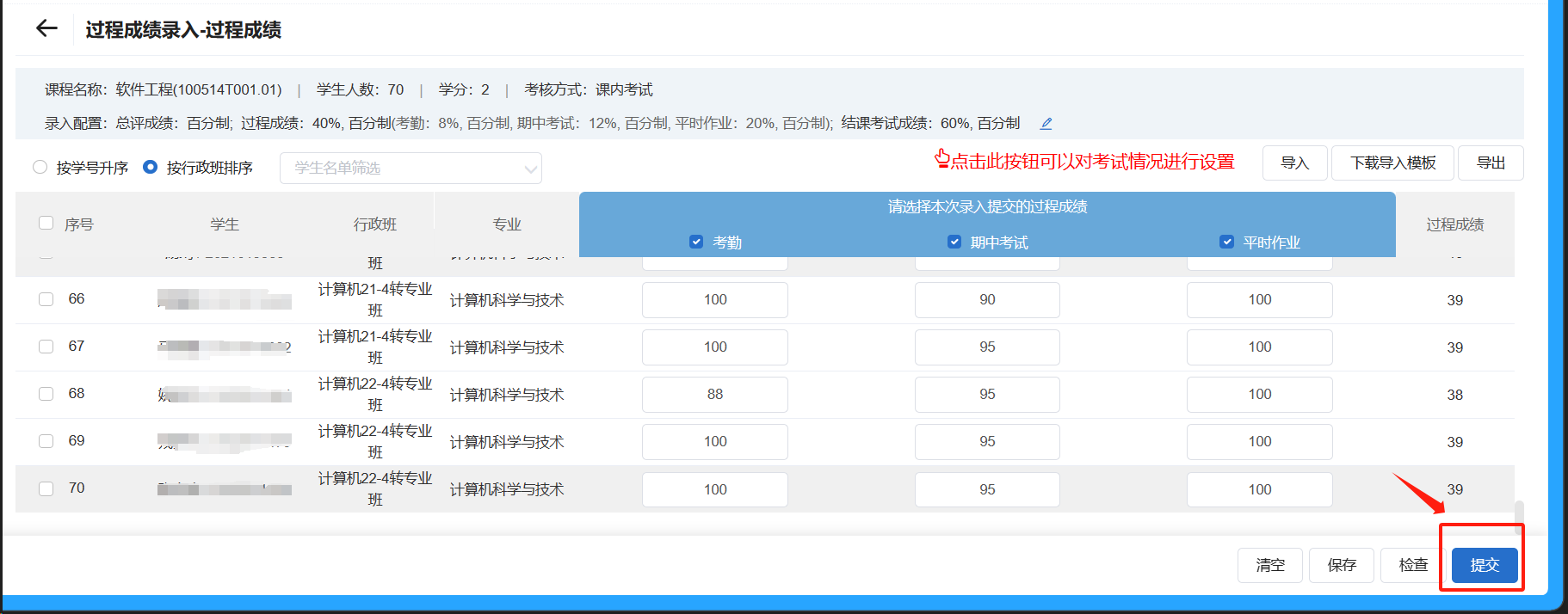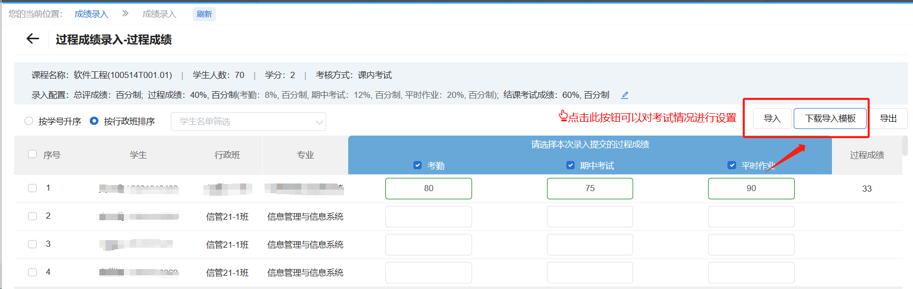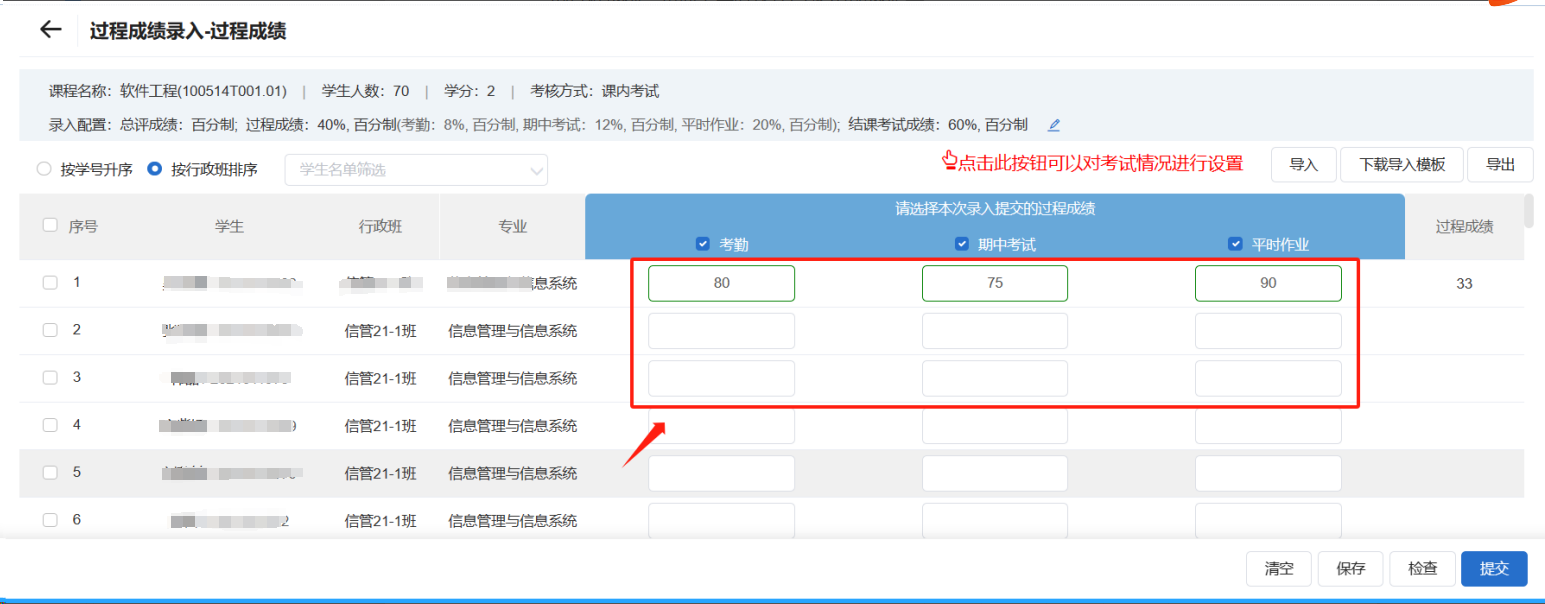 3.过程成绩录入: