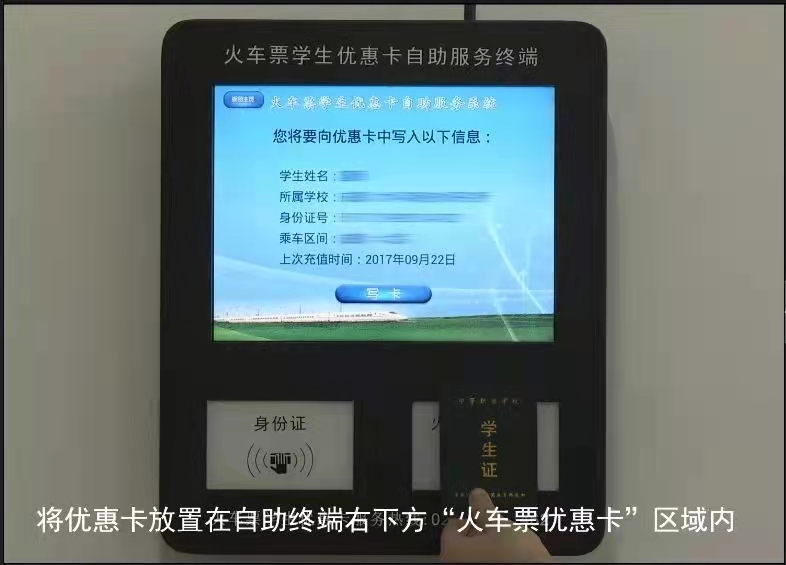 1.微信公众号注册并成功绑定后,携带本人学生证、身份证到自助终端服务机将个人信息写入乘车优惠卡。