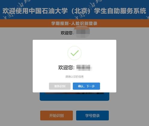 人脸识别成功后弹出对话框,点击“确认”。