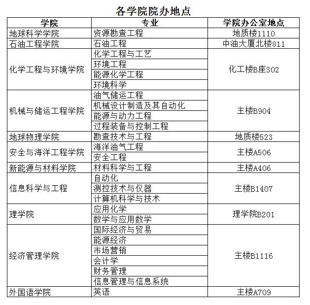 各学院办公室地点(见附表)