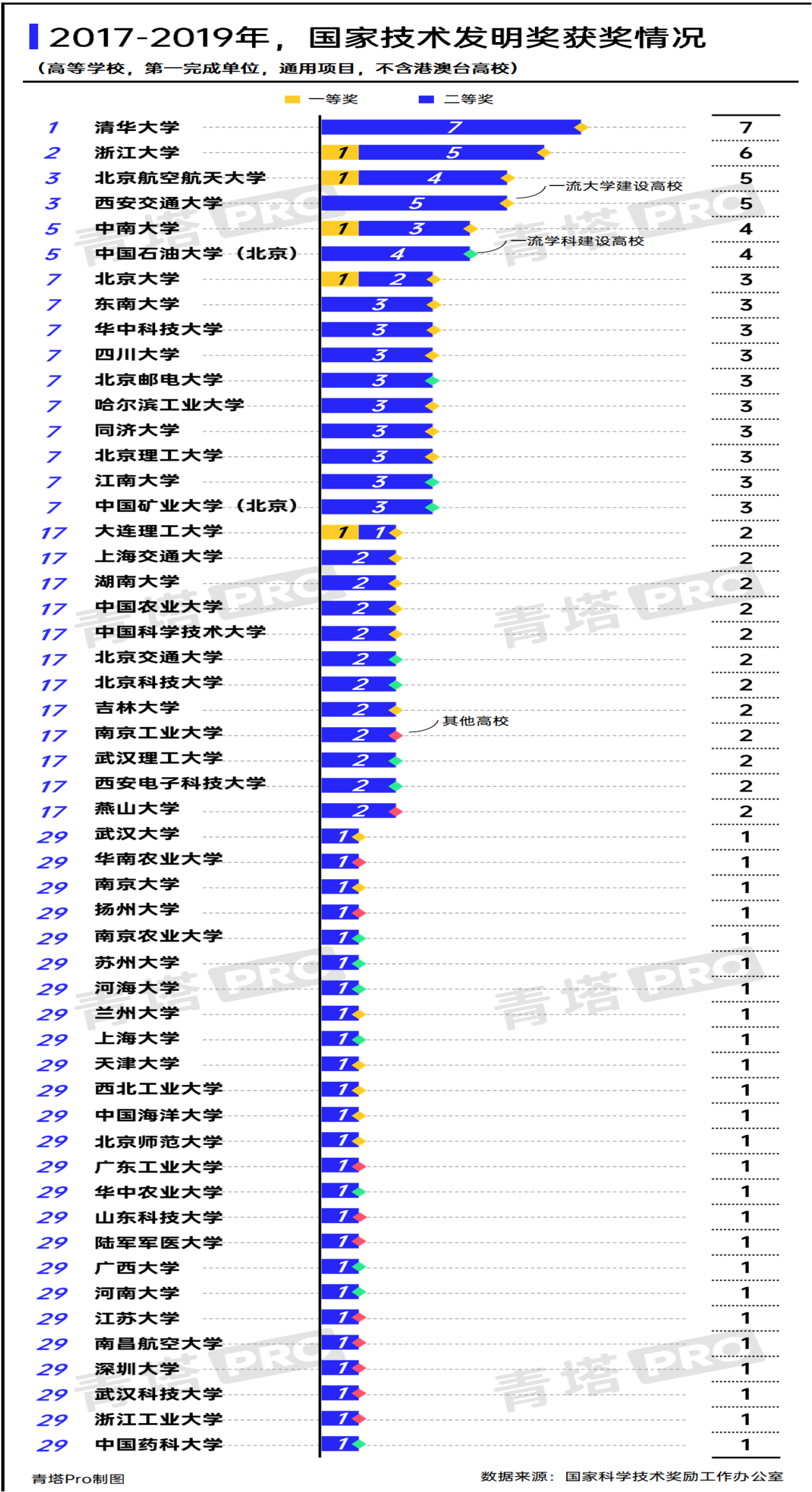 近期,根据国家科学技术奖励工作办公室公布数据,青塔统计了2017年-2019年高等院校(不含港澳台地区)荣获国家科学技术奖的获奖情况,并对数据进行了梳理和分析。中国石油大学(北京)作为第一完成单位,以三年间斩获4项国家技术发明奖的好成绩,在国家技术发明奖单项榜单中,并列全国高校第五位,在全国一流学科建设高校中,排名第一位。