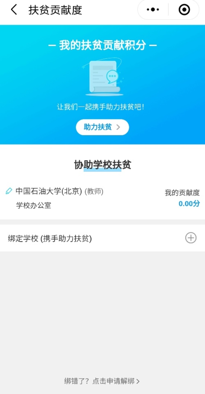 2.点击“绑定学校(携手助力扶贫)”。