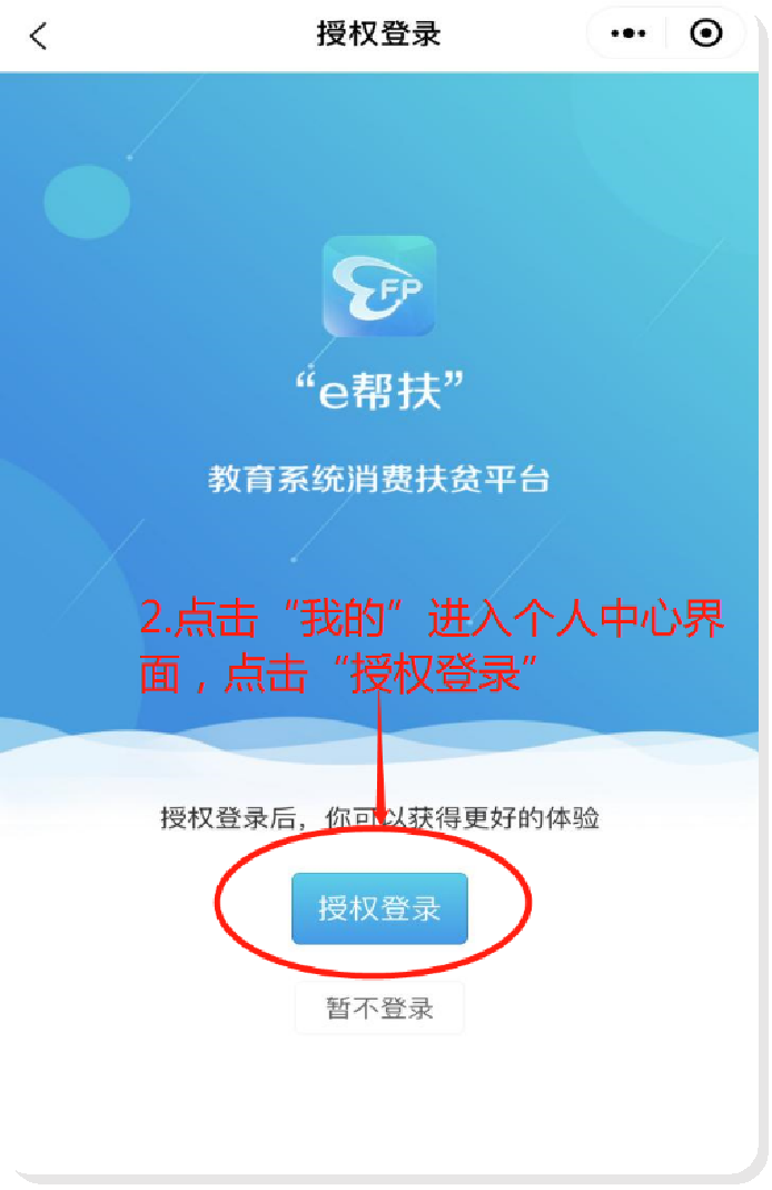 1.微信搜索“e帮扶”小程序,或扫描识别教育部e帮扶销售平台二维码,也可下载APP。