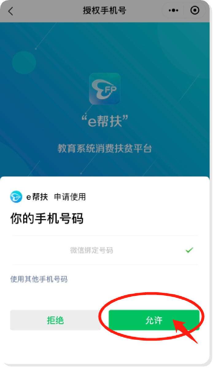3.点击“授权手机号,可选择“微信绑定号码”,也可“使用其他手机号码”,点击“允许”。