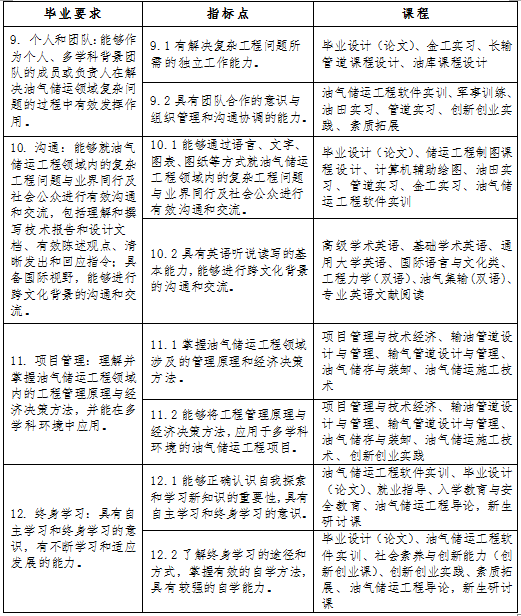 9. 个人和团队:能够作为个人、多学科背景团队的成员或负责人在解决油气储运领域复杂问题的过程中有效发挥作用。