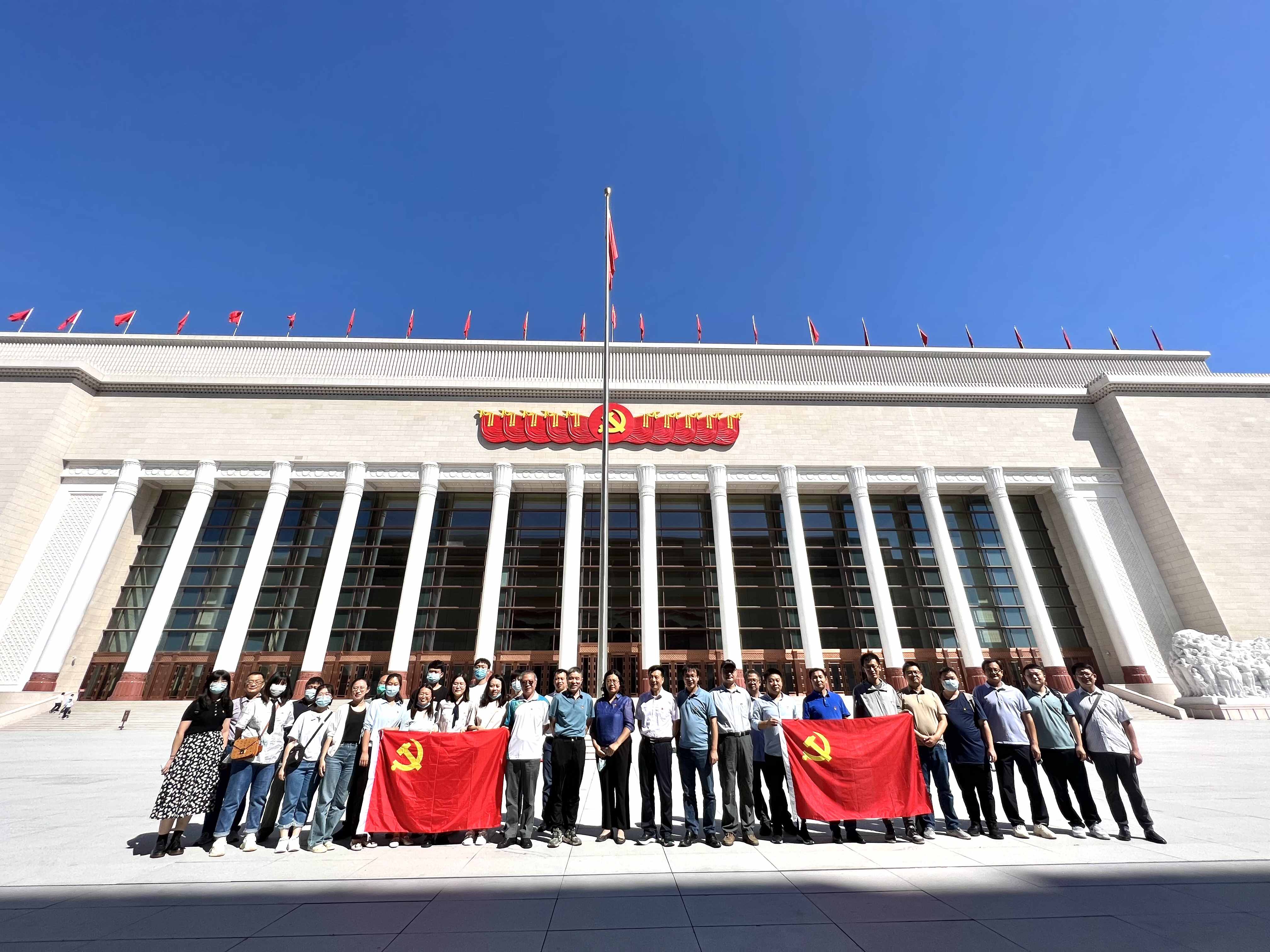 参观行程的最后,由9月份即将转正的党员黄山领誓、其他党员共同宣誓的仪式,在党史馆宣誓大厅庄重进行。全体党员面向鲜艳的中国共产党党旗,郑重举起右拳,重温入党誓词。大家以坚定有力的宣誓声,表达不忘初心、砥砺奋进的信念及决心。