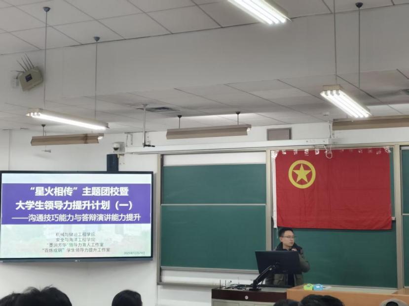 12月29日,由“百炼成钢”学生领导力提升工作室承办的星火相传主题团校暨大学生领导力提升计划第一讲于三教106教室成功举办,课程主题为“沟通技巧能力与答辩演讲能力提升”,学院入团积极分子、星火训练营营员参与学习。