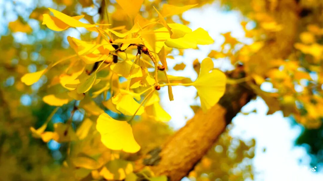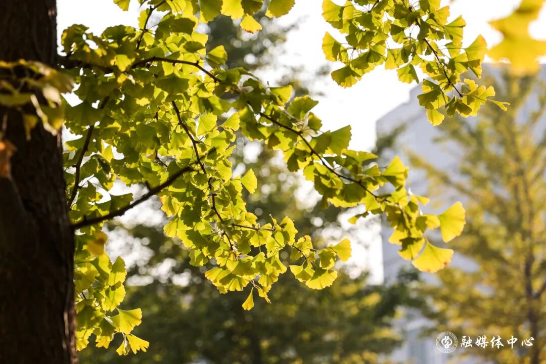 酣畅淋漓的泼墨绿意,如今沉淀为一片斑斓的的暖色海洋。楼宇的线条被银杏的灿烂裹挟晕染,正与天边的云朵静静对望。
