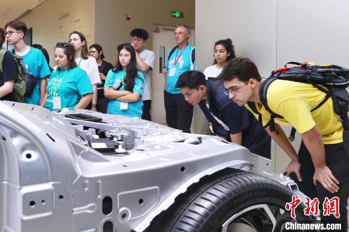 6月30日,参加中国石油大学(北京)夏令营的外国高校师生在北京参观小米汽车超级工厂。王紫儒 摄