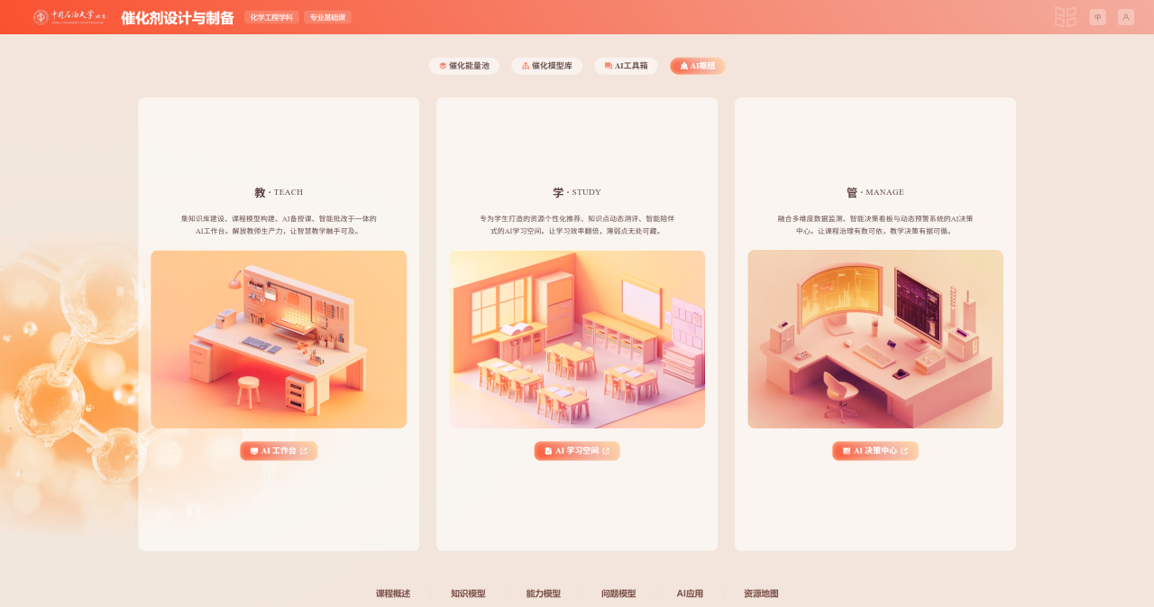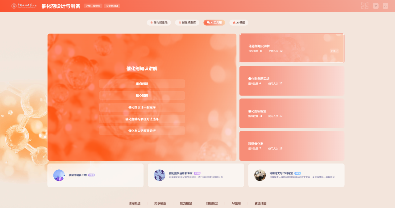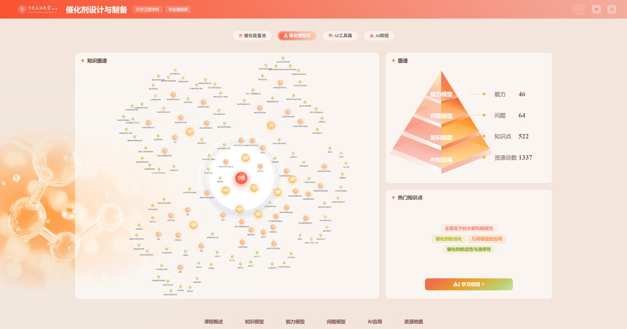 2023年起,中石大依托“研究生教育质量与创新工程”,启动AI课程专项建设。“催化剂设计与制备”课程团队开始探索将人工智能深度融入教学全流程。