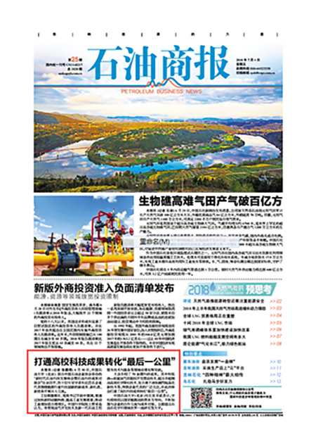 7月4日出版的《石油商报》第1版以“打通高校科技成果转化‘最后一公里’”为题