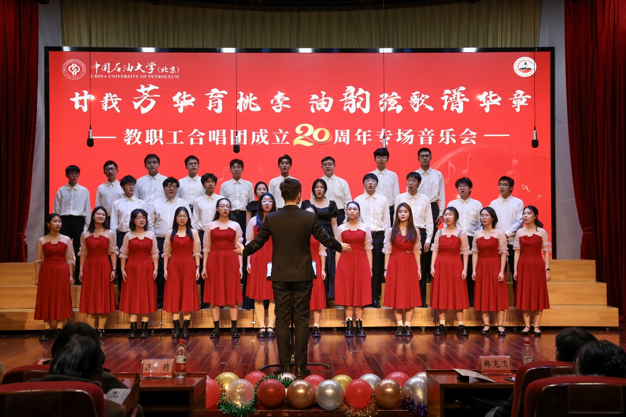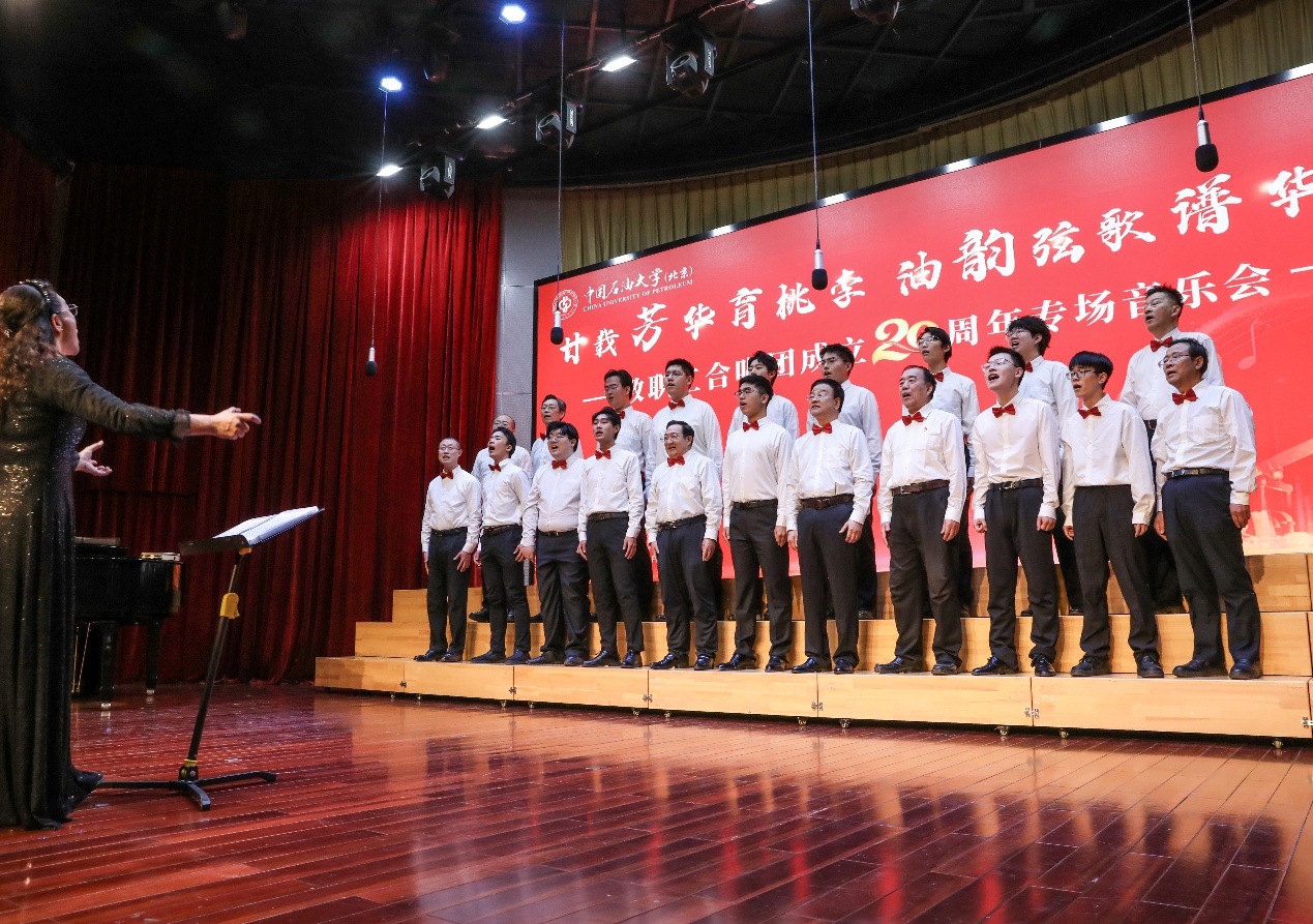 音乐会在全场合唱校歌《我为祖国献石油》中落下帷幕。