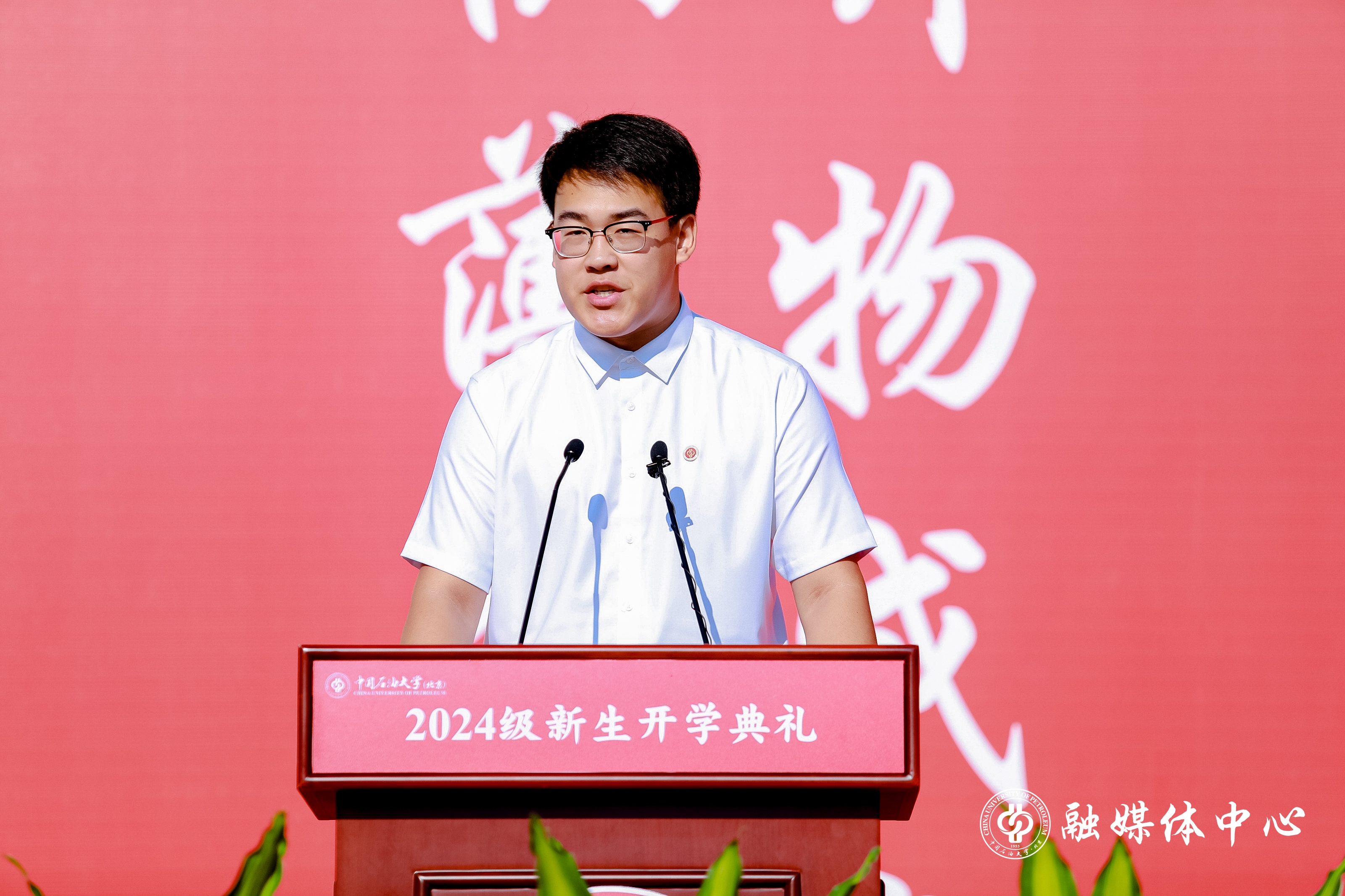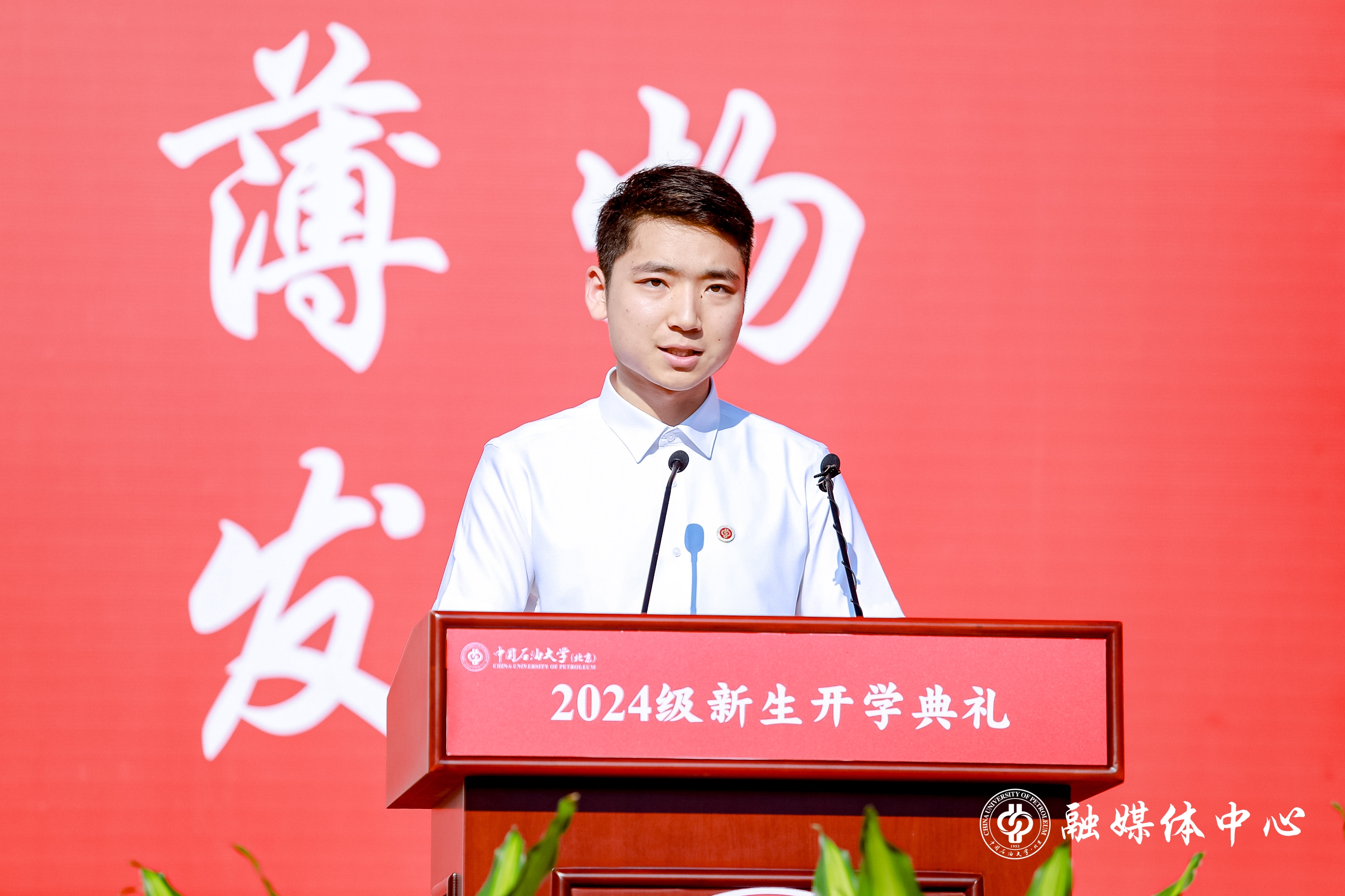 新能源与材料学院2024级本科生郭浩泉代表全体新生发言。他表示,作为新一代的中石大人,将秉承“国之所需,校之所重,我之所为”的价值追求,脚踏实地、刻苦钻研,书写属于这一代青年的青春华章。