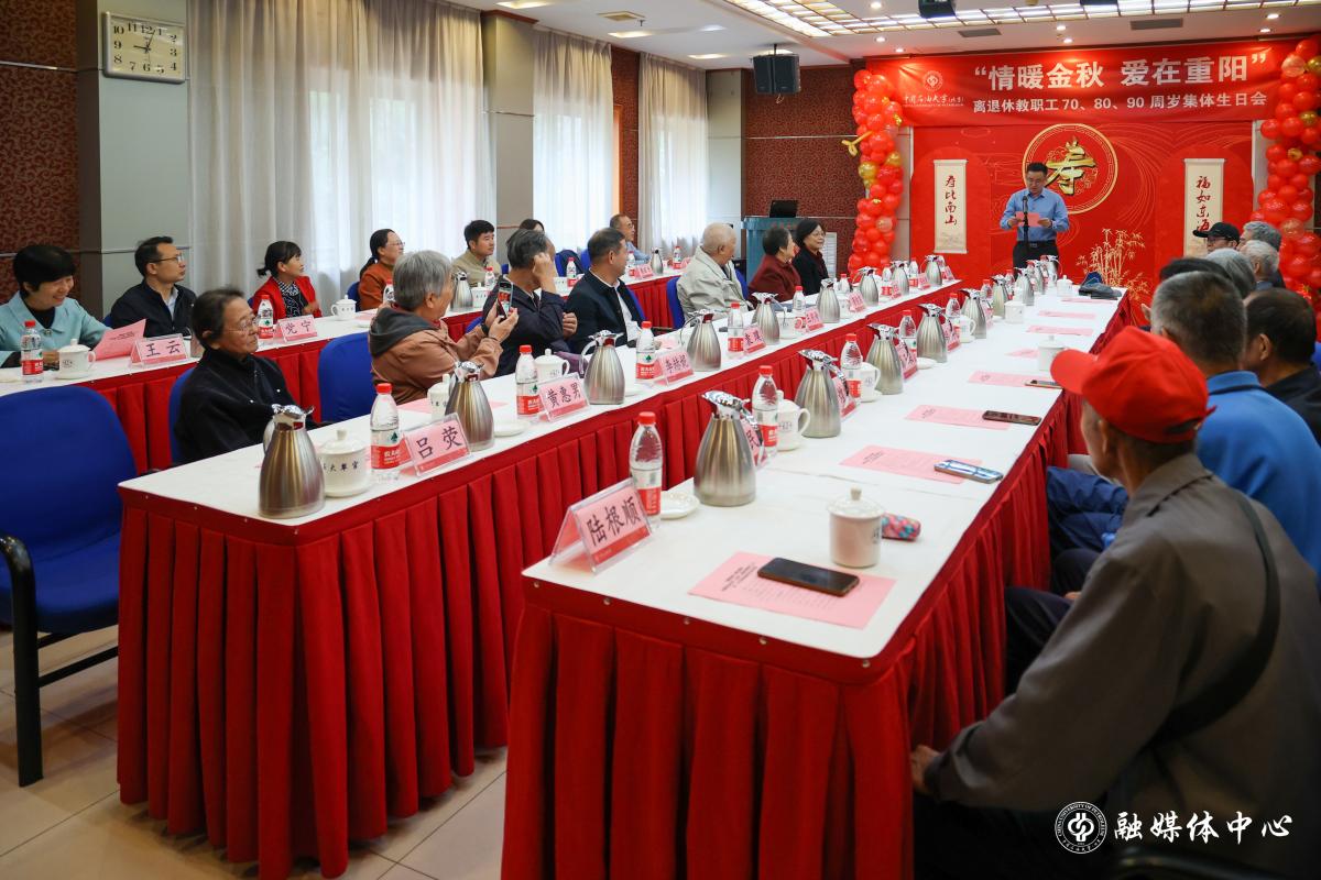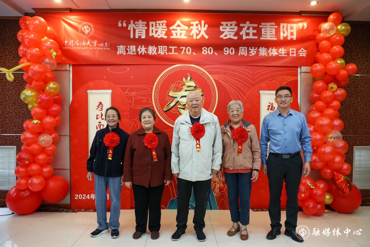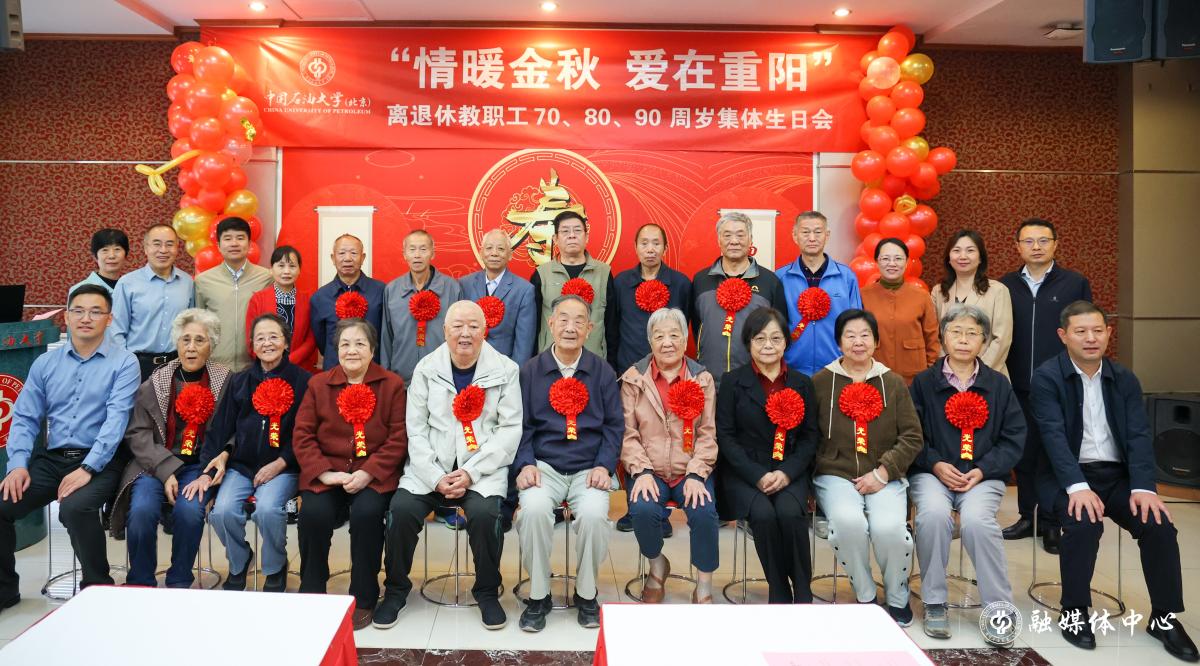 在重阳节来临之际,中国石油大学(北京)于10月9日在翠宫第九会议室举办了主题为“情暖金秋 爱在重阳”的70、80、90周岁离退休教职工集体生日会。学校党委书记王同奇、党委副书记蒲俊霖以及各相关职能部门负责人为到场的16位老寿星送上生日祝福。