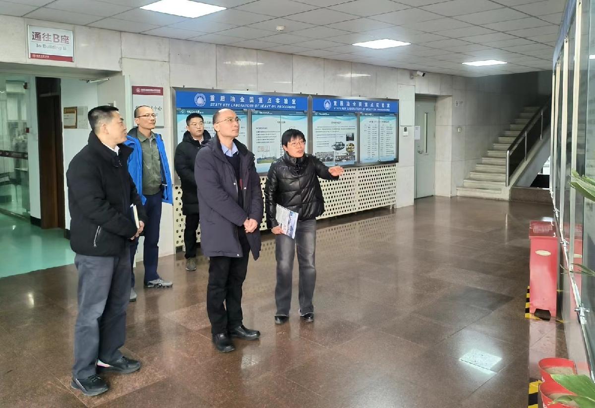座谈会前,张鑫、王晨光一行参观了重质油全国重点实验室。