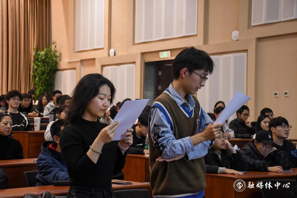 现场学生围绕“如何准备一个陌生角色”“舞台表演与影视表演的差异”“青年如何走近戏剧”等问题与常玉红展开交流。常玉红还指导同学们进行即兴表演练习,体验角色创造的初步过程。
