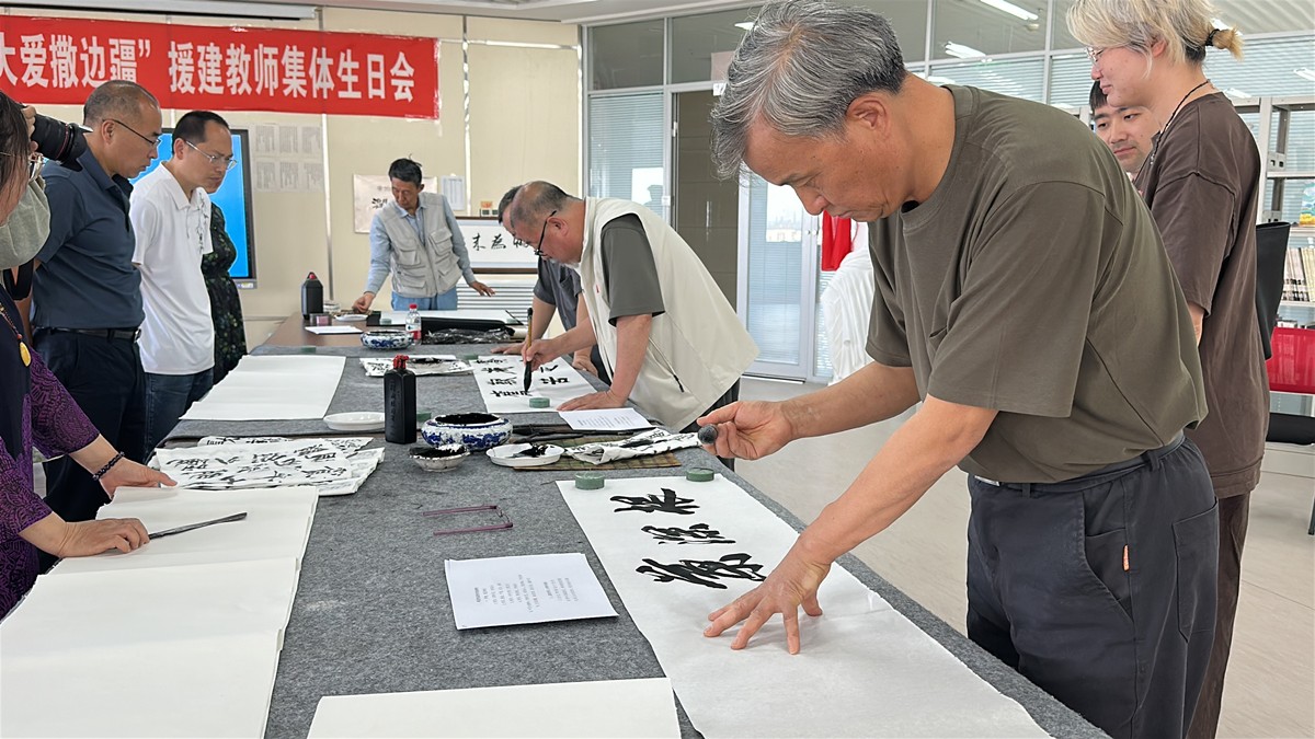 5月9日和12日,李如、任东会、中石大退休教师代表与克拉玛依区书法绘画摄影家及校区美育老师、书画爱好者、援建教师开展了两场书画交流笔会,以克拉玛依校区文化建设、校区建设十周年和总书记回信五周年为主题创作了多幅书法作品,就石油精神如何通过艺术实现传播、课堂教学中如何融入文化元素、如何增强学生的文化素养等进行了深入交流。