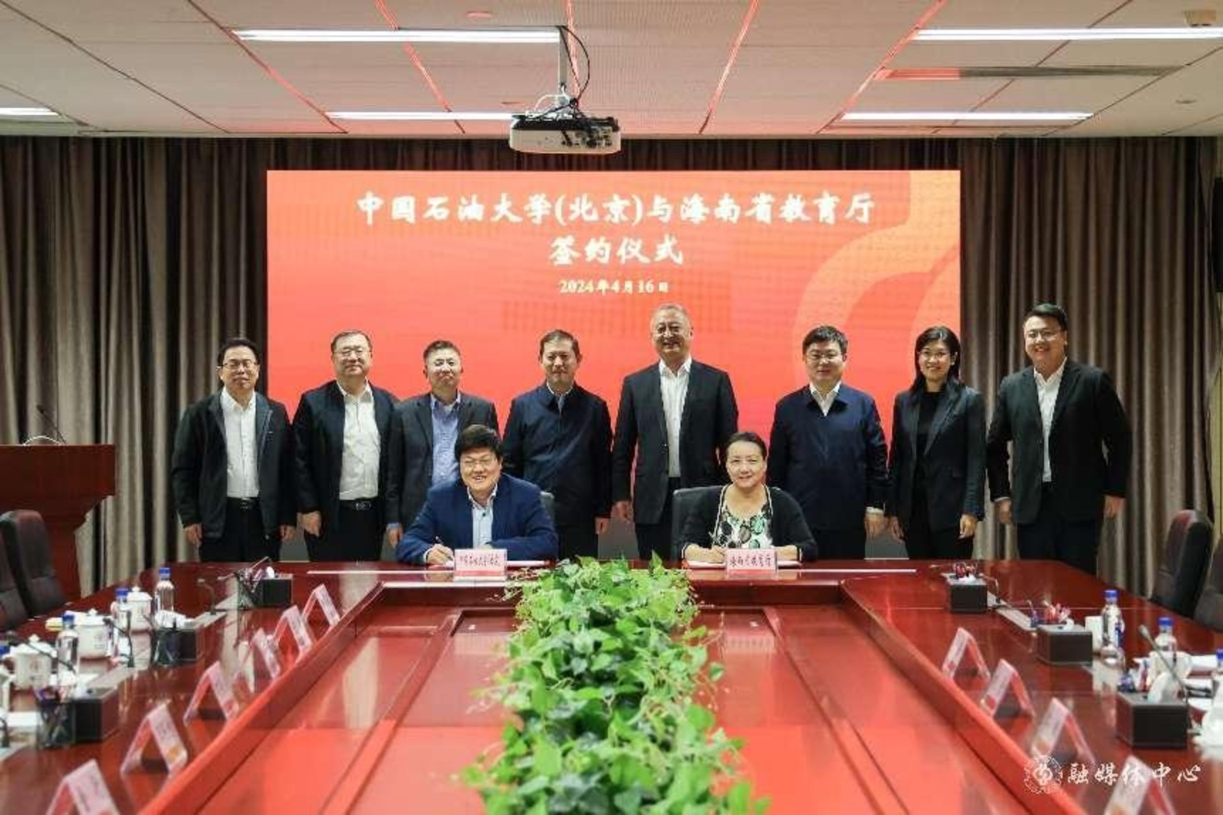 海南省教育厅副厅长崔莹和中石大副校长刘植昌分别作为政府和学校代表在合作协议上签字,双方相关部门负责人见证签约仪式。