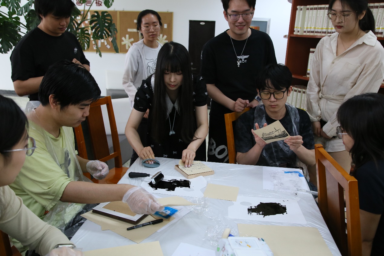 在“典籍视界”环节,师生共同观看了中央广播电视总台《典籍里的中国》节目《天工开物》精彩片段。在“古籍新解”环节,人工智能学院超级计算方向师生联合党支部书记孙庆骁、中国科学院计算技术研究所高通量党支部助理研究员宋舒寒分别以“探索《天工开物》中的能源智慧——‘双碳’背景下的能源转型”“科学思维与现代启示:从古籍智慧到科研创新”为题,解读了《天工开物》中的能源知识,阐述了古代科学思维对现代学科融合、科研创新的启示,分析了“双碳”战略目标下传统能源的转型路径,展望了人工智能与高性能计算相结合驱动全球能源领域变革的未来。在“古今对话”环节,人工智能学院2023级学生王赫萌、李泳江以“古今能源对话”为题表演了微情景剧,2022级学生宋英暄、相广滨进行了机器人展示。剧中,明代科学家宋应星“穿越”至现代,与天游8线路检测中心生和能源AI助手机器人“小源”相遇,并展开了跨越时空的对话,传达出“承古智、拓未来,科技为民”的理念。在“科技随想”环节,超算俱乐部学生社团成员宋家乐以“‘方寸之思,万象之演’——《天工开物》精神下的超算竞赛实践”为题,分享了参加世界大学生超级计算机竞赛等比赛的心路历程。在“薪火相传”环节,现场师生挑选自己喜欢的《天工开物》名言佳句,书写在卡片上,激发科研热情。在“古技今用”环节,师生们还亲身体验了非遗版画拓印,精心制作了将能源主题元素与古法技艺巧妙融合的专属能源版画。