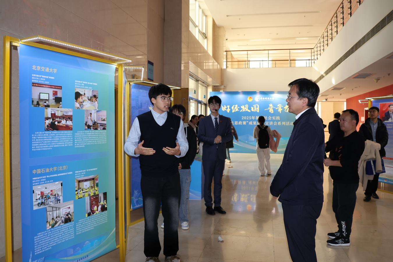 11月12日,由共青团中央青年发展部指导,中央财经大学主办的2025年全国大学生暑期文化科技“三下乡”社会实践“财经报国青年力行”专项活动成果展示活动在京举办,共青团中央青年发展部部长岳伟、实践处处长周轩宇,共青团北京市委大学中专工作部副部长王若冰,北京志愿服务发展研究会副会长代恒猛参加活动。受主办方邀请,中石大“石”志不渝志愿服务队参加活动,队长董书赫作经验分享。